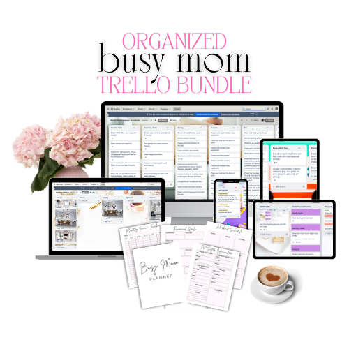 The Organized Busy Mom Trello Bundle is your all-in-one solution for managing the demands of mom life with ease. With 7 custom Trello boards and a 70-page Busy Mom Planner, you’ll have everything you need to organize your home, streamline your routines, and stay on top of it all.