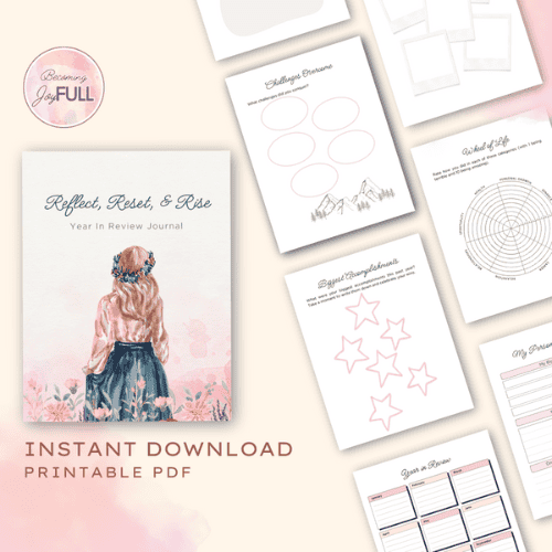 The Reflect, Reset, & Rise: Year-in-Review Journal helps you look back with intention, uncover lessons, and step into the new year with clarity and confidence. With thoughtful prompts, guided reflection, and space to celebrate your wins, it turns your experiences into insight you can actually use.Â