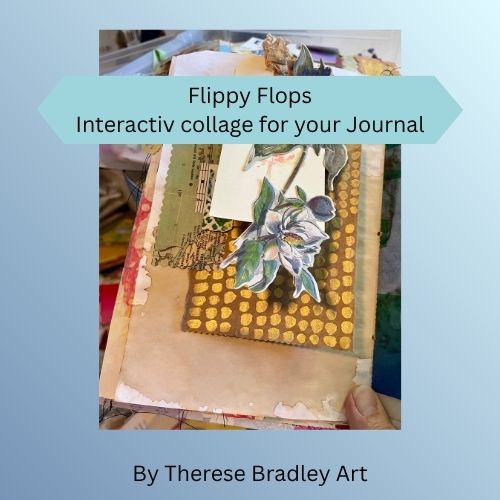 Learn to create interactive flip-in collage pieces – playful layers that both hide and reveal parts of your story. Using simple scraps and hand painted elements, you’ll transform your journal into a more personal, soulful space. Flippy Flops are fun to make, beginner-friendly, and add just the right mix of creativity and magic to your pages.